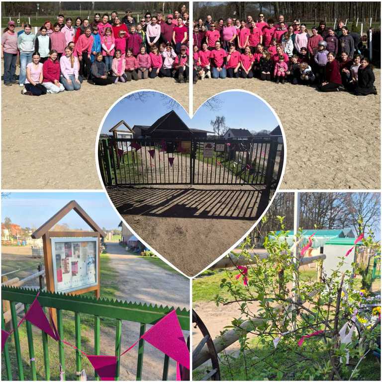 Mit pinken Bändern haben wir den Hof geschmückt um ein Zeichen zu setzen.