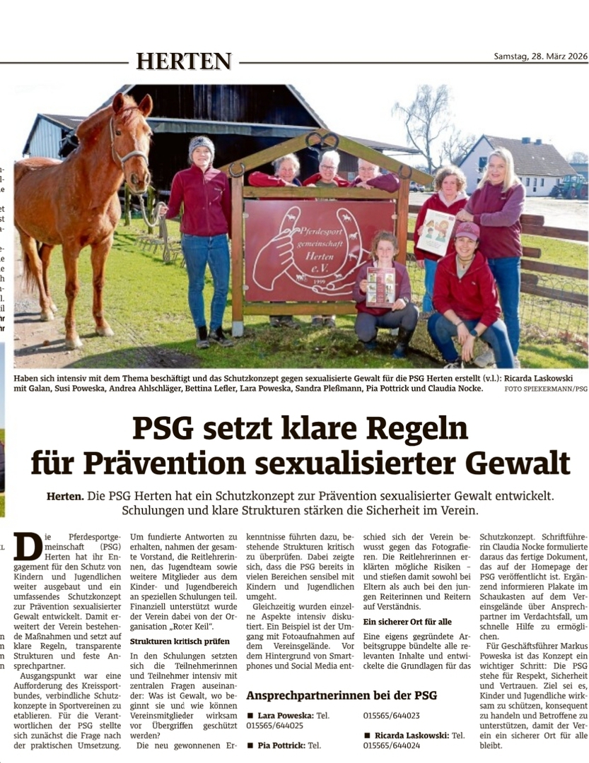 Die Pferdesportgemeinschaft Herten e.V. setzt sich mit Leidenschaft für die Ausbildung von Kindern und Jugendlichen ein. Damit unser Nachwuchs auch weiterhin sicher