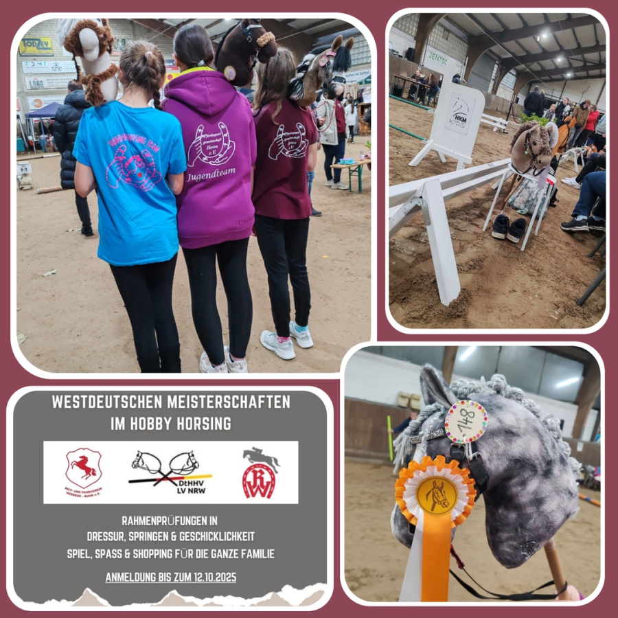 Am Samstag den 6.9.2025 fand wiedermal ein Hobbyhorsing Turnier beim Reitverein Ladbergen statt. Fünf Starter der PSG Herten nahmen hier teil. Jugendreiter, Dressur, Geschicklichkeitsparcours, Stilspringen, Zeitspringen, Hamsterspringen und Pas de Deux standen in der Ausschreibung. Für jede Altersklasse war etwas dabei. Viele Schleifen wurden an diesem Tag an leuchtende Kinderaugen verteilt. Die Teilnehmer und Eltern waren wieder begeistert von dem super organisierten Event und freuen sich schon auf eine Teilnahme in 2026.